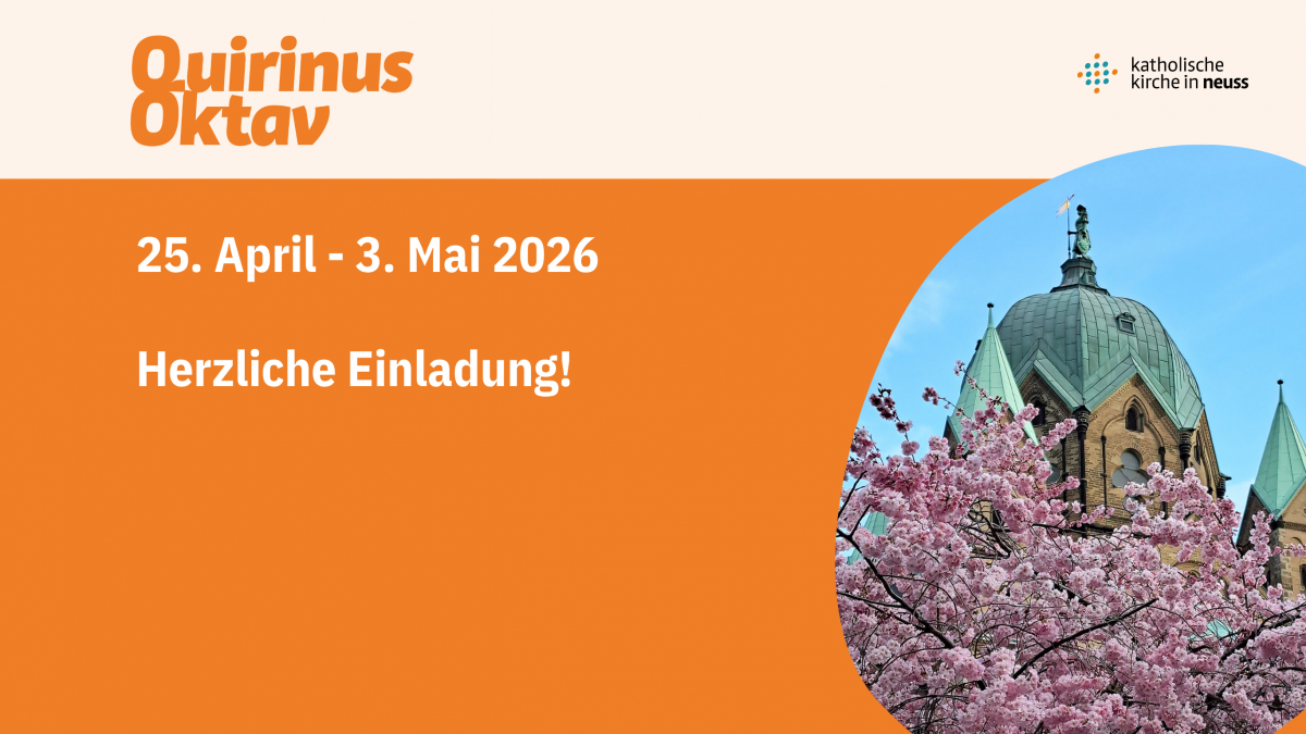 mit großer Freude laden wir zur Feier der Quirinus-Oktav 2026 ein. Die Festwoche beginnt am Samstag, 26. April 2026, um 17:30 Uhr im Quirinusmünster mit der Jugendmesse mit der Frage nach der „eigenen Berufung“ und anschließendem „Nightfever“. An dem Wochenende wird im ganzen Erzbistum um „Geistliche Berufungen“ für kirchliche Berufe gebetet.