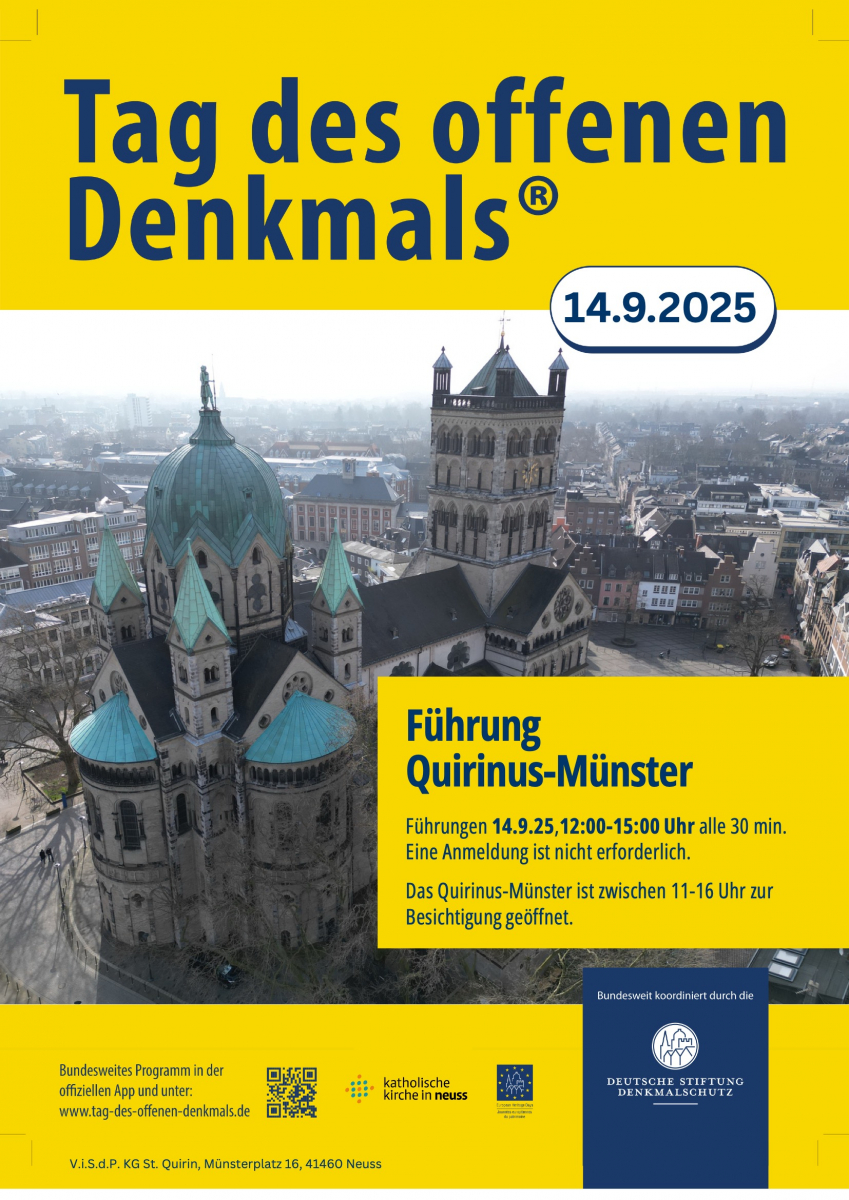 Das Quirinusmünster ist an diesem Tag von 11-16 Uhr zur Besichtigung ganz geöffnet. Von 12-15 Uhr wird Herr Lüpertz je halbstündig Führungen im Münster anbieten. Eine Anmeldung für eine Führung ist nicht notwendig.